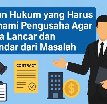 Menjalankan usaha bukan hanya soal strategi bisnis dan pemasaran, tetapi juga harus dibarengi dengan pemahaman hukum. Banyak pengusaha yang mengalami hambatan, bahkan gulung tikar, karena kurang memahami aturan hukum yang berlaku di Indonesia.