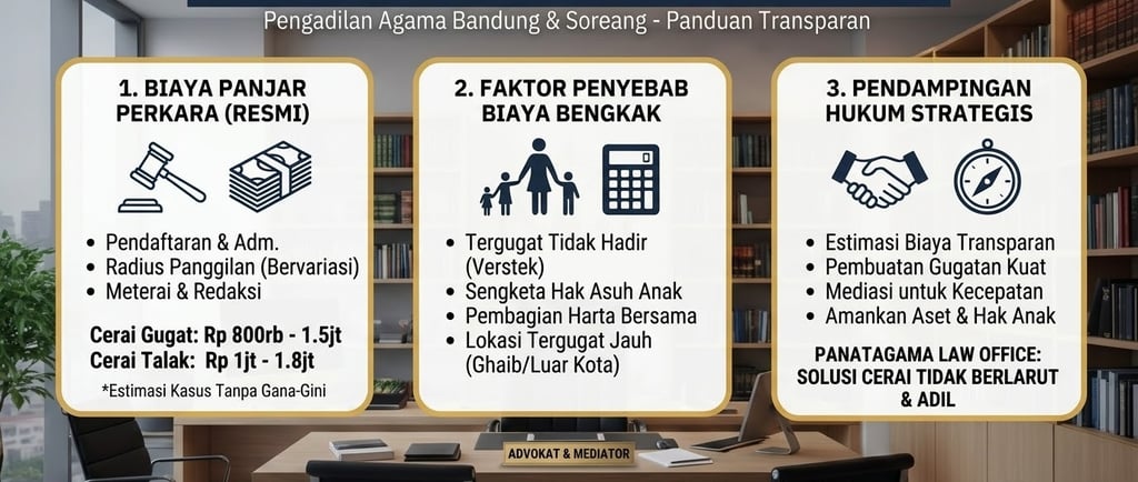 Penggunaan Jasa Advokat: Biaya di atas adalah biaya resmi negara (PNBP). Jika Anda menggunakan jasa Panatagama Law Office, akan ada Professional Fee tambahan yang mencakup konsultasi, pembuatan draf gugatan, hingga pendampingan di persidangan agar Anda tidak perlu pusing bolak-balik ke pengadilan.
