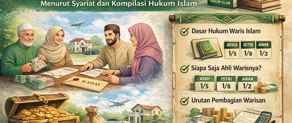 Pembagian warisan dalam Islam bukan sekadar urusan keluarga — ini adalah kewajiban syariat yang diatur secara rinci dalam Al-Qur'an dan diperkuat oleh Kompilasi Hukum Islam (KHI). Panduan ini menjelaskan siapa saja ahli waris yang berhak, berapa bagian masing-masing, dan bagaimana prosesnya di mata hukum Indonesia.