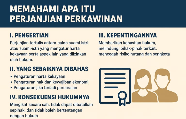 Perjanjian Perkawinan adalah bentuk manajemen risiko rumah tangga yang modern. Ia menghilangkan potensi konflik finansial di masa depan, sehingga pasangan dapat fokus membina hubungan emosional tanpa bayang-bayang sengketa harta.